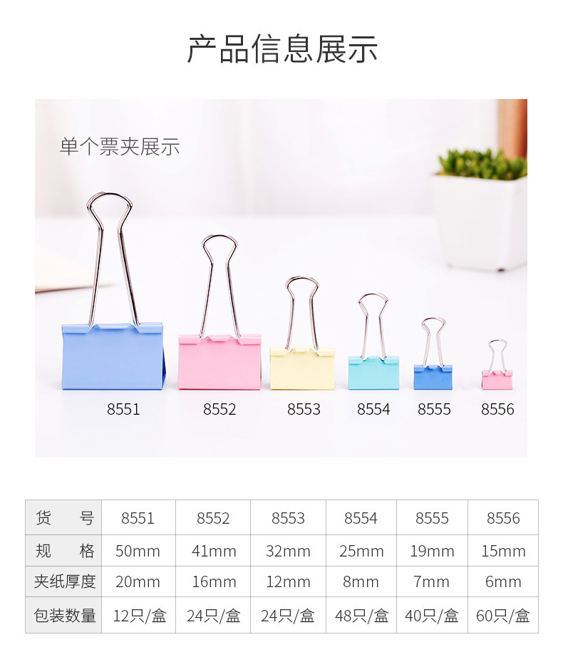 彩色長(cháng)尾夾-金(jīn)屬長(cháng)尾票(piào)夾-規格15mm/19mm/25mm/32mm/41mm/50mm
