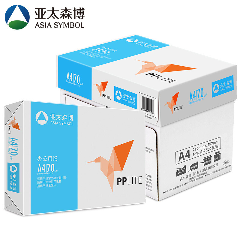 亞太森(sēn)博拷貝系列A4 70g複印紙(zhǐ),5包每箱,辦公打印使用(yòng)。